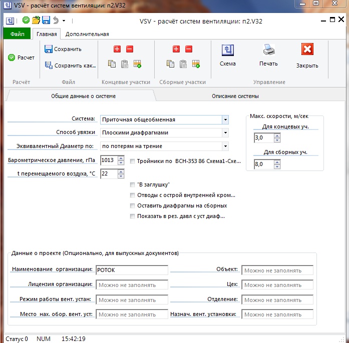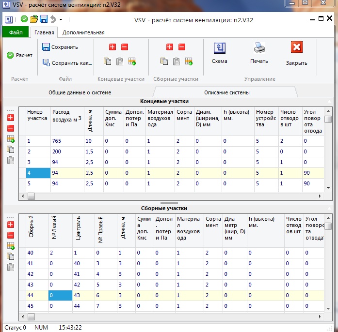 Программа предназначена для аэродинамического расчёта систем вентиляции, аспирации и пневмотранспорта.