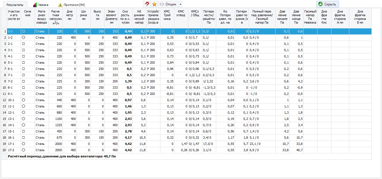 Такой мы видим программу для аэродинамического расчёта систем вентиляции.